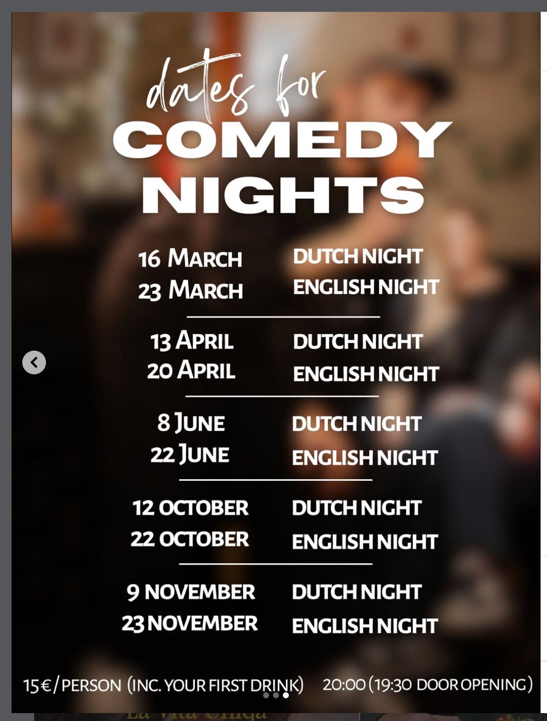 Extra’s: Geniet van Oniria cocktails en heerlijke tapas (niet inbegrepen in de ticketprijs). Breng je vrienden mee, bestel je favoriete hapjes en drankjes en beleef een avond vol humor, smaak en gezelligheid bij Restaurant Oniria.