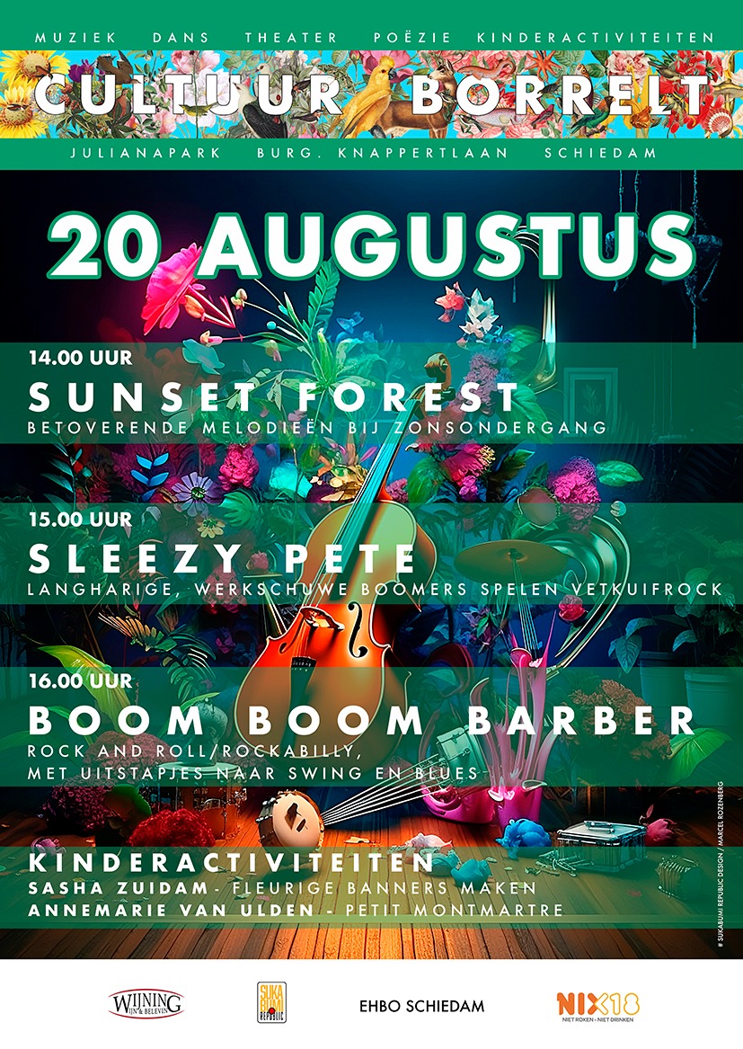 Het worden 4 mooie zondagmiddagen met muziek, dans, een makersmarkt en aan de kleintjes is ook gedacht. Houd facebook in de gaten voor de laatste update van de programmering.