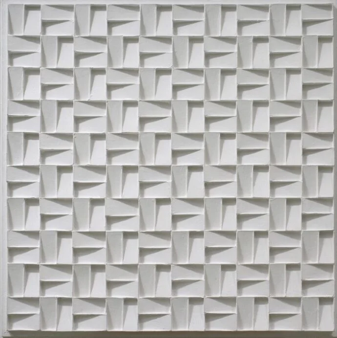 -Jan Schoonhoven, R 71-20, 1971. Latexverf op karton en papier-maché op paneel. Collectie Stedelijk Museum Schiedam, Schenking van Stichting Altena Boswinkel, 1999
