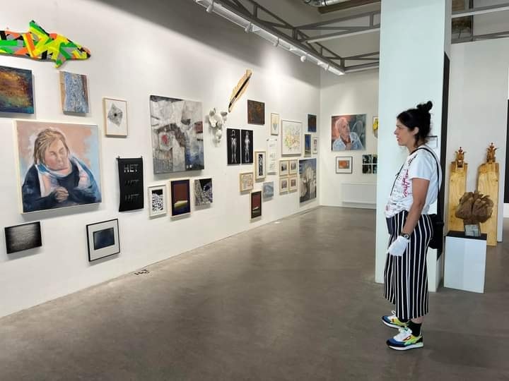 De bezoekers kiezen een werk uit, de suppoost verhangt het werk en gaat in gesprek over het resultaat.
