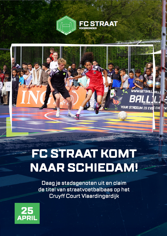 Speel toffe potjes, daag leeftijdsgenoten uit en claim de titel straatvoetbalbaas! Maar ook freestyle legende Touzani komt langs, ben jij erbij?
