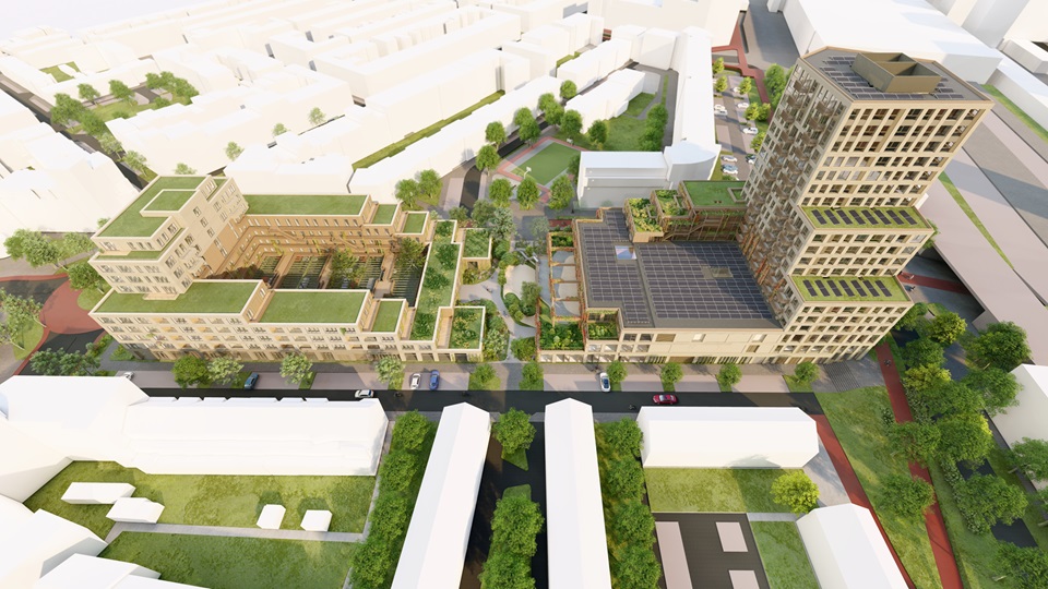 In het hart van de wijk 'Oost’ komt een nieuw schoolgebouw, sportfaciliteiten, kinderopvang, huiskamer van de wijk, zorgvoorzieningen en 230 appartementen.