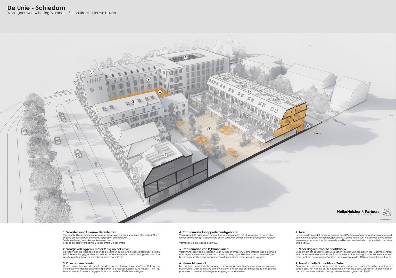 Er zijn woningbouwontwikkelingen in Schiedam, op de Nieuwe Haven, Schoolstraat en Warande. Op de Nieuwe Haven en Schoolstraat gaat het om de renovatie van bestaande panden. Op de Warande gaat het om nieuwbouw.